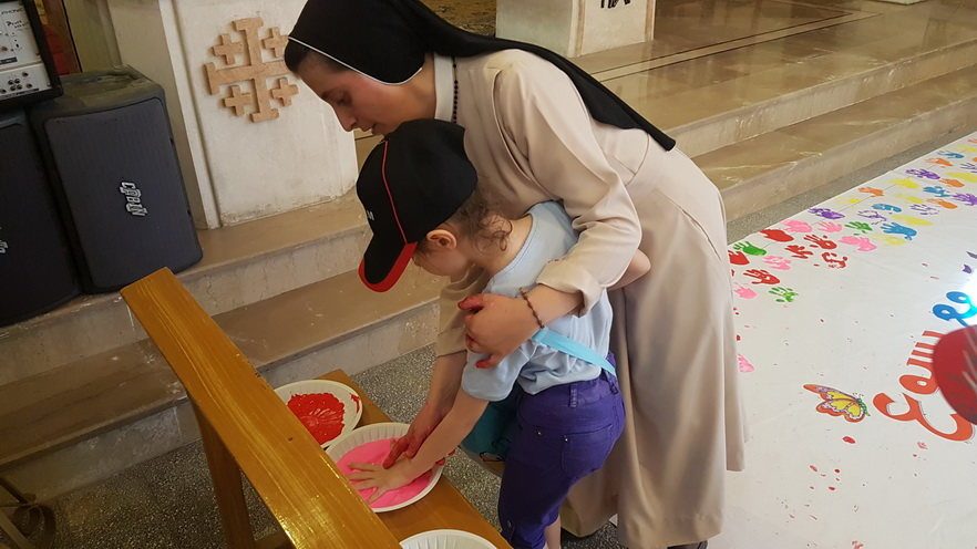 Farnost proto pořádá dvouměsíční tábor, kterého se účastní celkem 860 dětí ve věku 4-15 let. Společně s řeholníky, řeholnicemi a dobrovolníky se snaží „vrátit barvu do života dětí, které za tyto poslední roky zakusili téměř jen temnou barvu války“. Tábor nese název „Díky Ježíši je můj život barevný“.