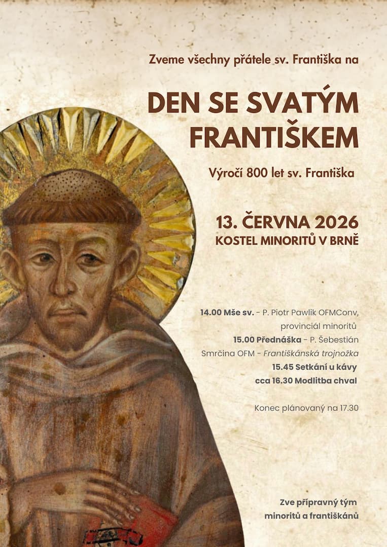 Zveme na hlavní připomínku 800. výročí sv. Františka na Moravě, která proběhne 13. června od 14 v brněnském kostele minoritů.